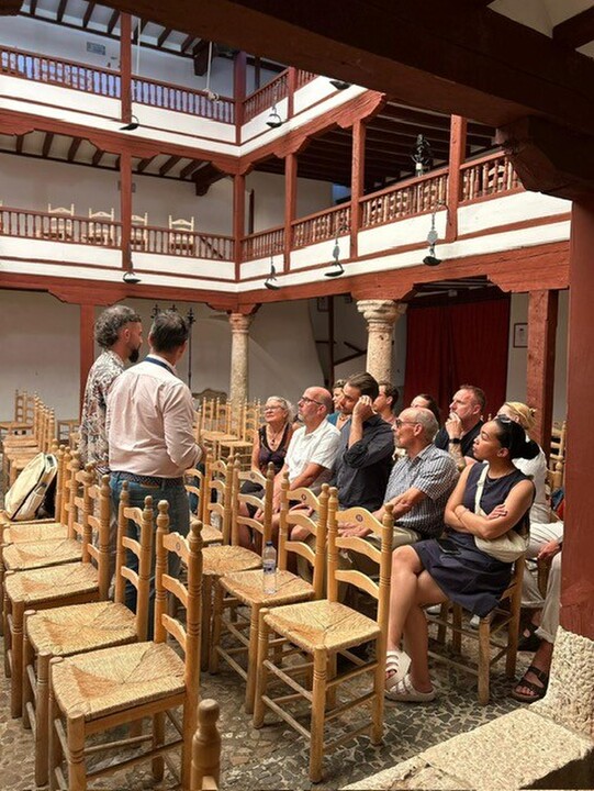That afternoon we headed to the town's main square and into the Corral de Comedias, Spain's best preserved 17th century theatre. Theatre director, Celestino, gave us a lively introduction to the history of the theatre and a sense of what 17th century Spanish theatre would have felt like. Not only that, but we were also treated to a behind the scenes orchestral rehearsal for that evening's production of Don Quijote - the orchestra played "Attack on the Windmills" and we were allowed onto the stage for a group photos with some of the actors.